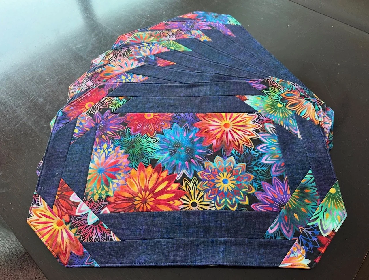 For this Class you will focus on the placemats. They are so easy, you will want to whip them up every occasion. Piece and quilt at the same time. For a fabulous gift you can add the lined cloth napkins later. Just make sure you get enough fabric at the same time.