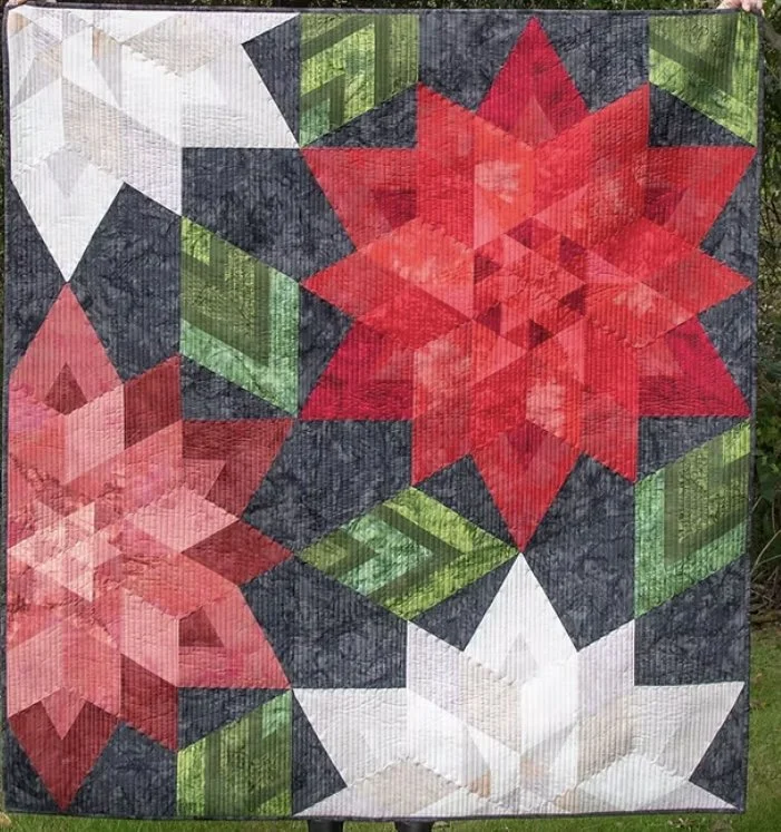 Give your Christmas decor a WOW factor. This quilt is made using a variety or shapes using the same ruler - - creative grids 60 degree diamond ruler. Piecing starts out with smaller shapes and works out in size. This is a technique course - you will not finish the quilt in the course but you will be able to confidently finish it quickly when the course is over. There are no Y seams or fussy cutting. It looks complex but is not - at all.